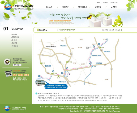 (주)원엔지니어링는 오수정화시설 셀계시공 전문업체로서 사업분야 및 기술력 등을 중점적으로 부각하기 위하여 제작된 사이트입니다.